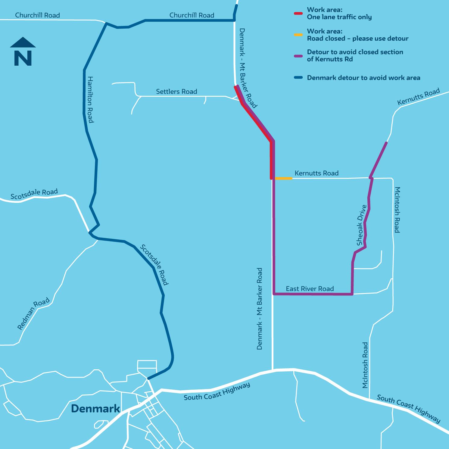 Map of work along Denmark Mt Barker Road